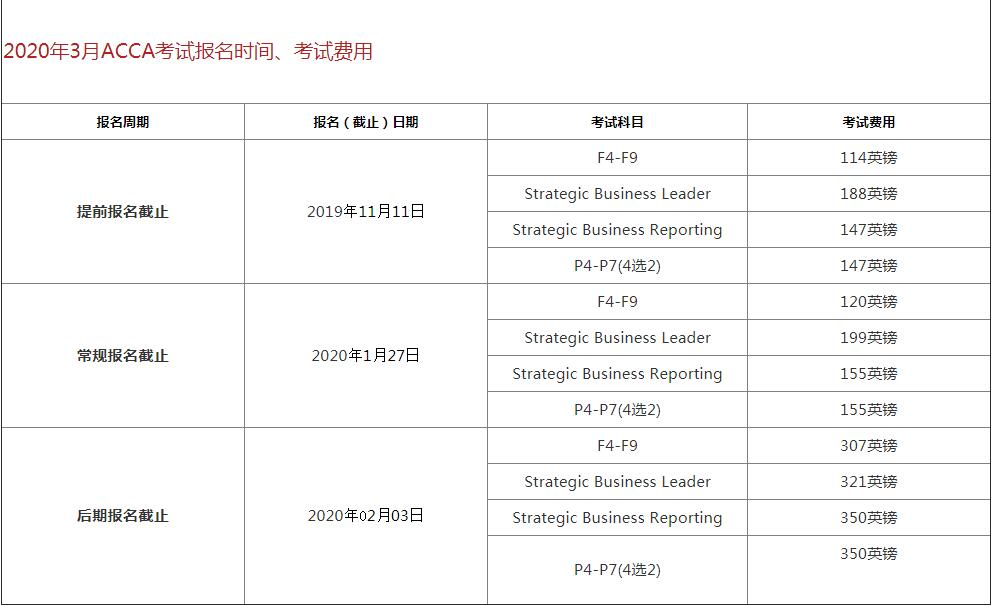 ACCA考試費(fèi)用:(注:所有考試費(fèi)用都以早期繳費(fèi)為準(zhǔn)。)