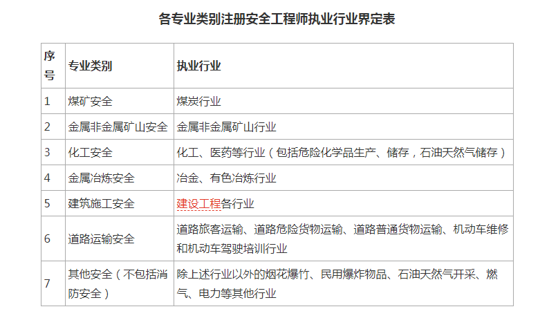 各專業類別注冊安全工程師執業行業見附表。