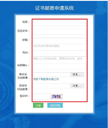 第三步:證書狀態為可申請時,點擊“郵寄申請”,填寫收件信息。