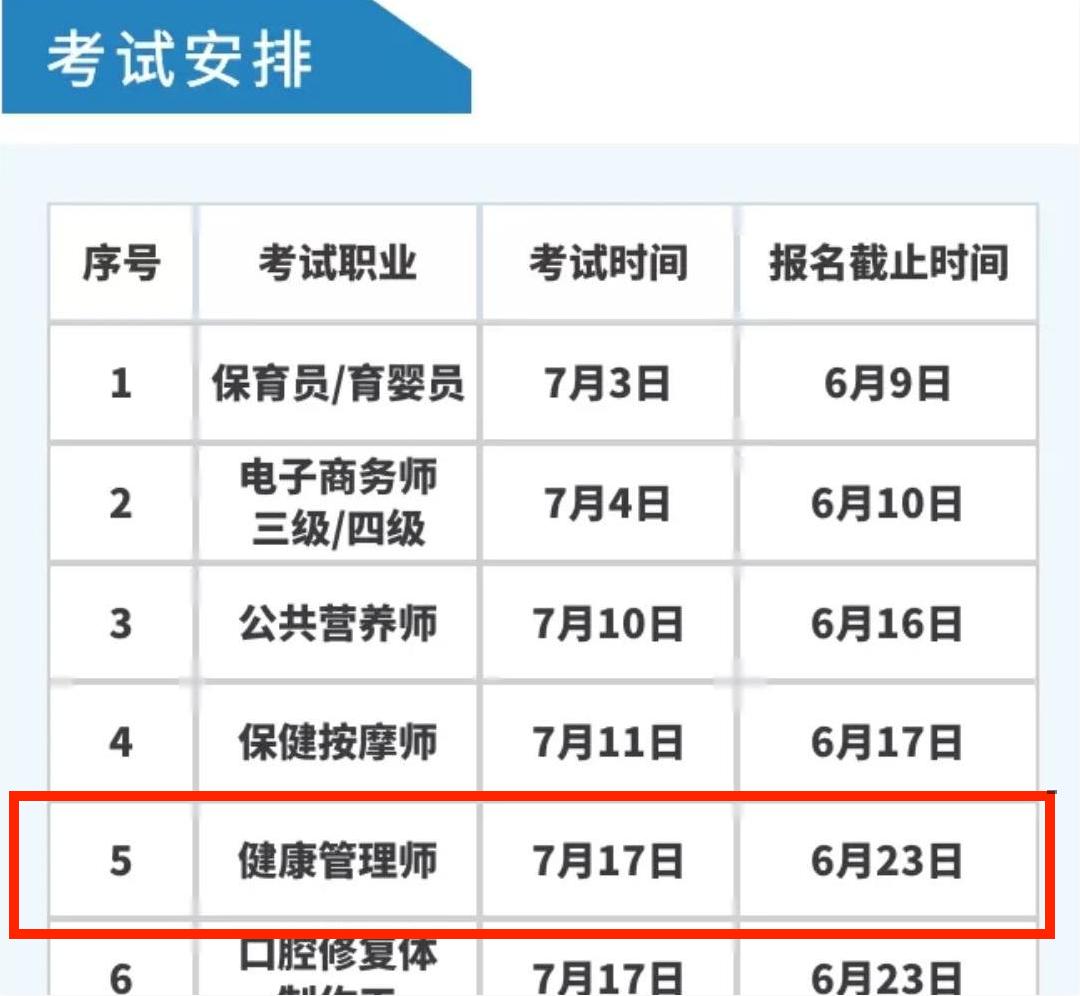 2021年7月吉林報考健康管理師考試省考報名截止時間:6月23日