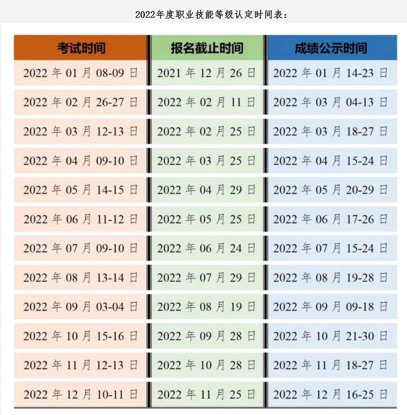 2022年度職業(yè)技能等級(jí)認(rèn)定時(shí)間表: