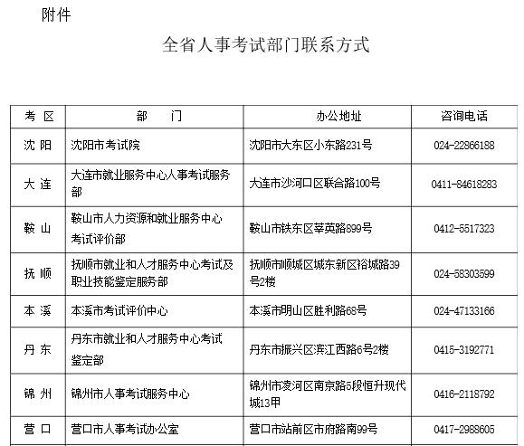 附件:全省人事考試部門聯(lián)系方式