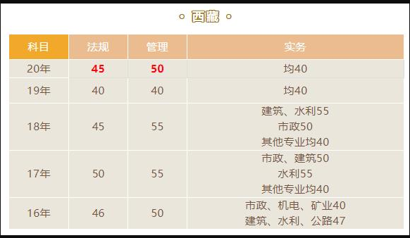 1、歷年西藏二級建造師考試合格標準