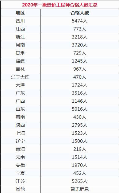 2020年各省一級造價工程師的合格名單尚未完全公布,暫時以四川省為例分析一下今年的通過率。