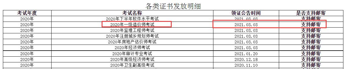 環球網校2020年眉山一級造價工程師考試證書領取通知