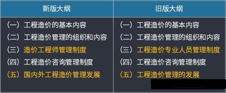 全國造價工程師考試大綱新舊對比