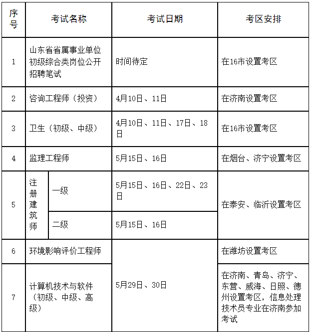 2021年山東省一級造價工程師考試計劃16市設置考區
