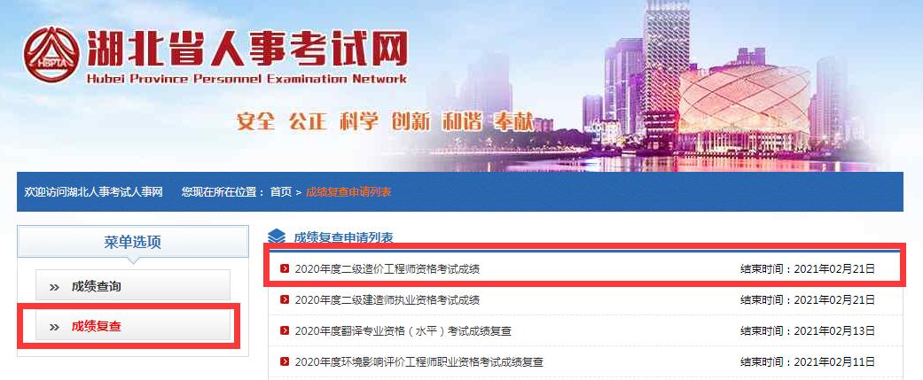 點擊進入>>2020年湖北二級造價工程師成績復查入口