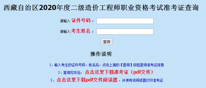 點(diǎn)擊進(jìn)入>>2020年西藏二級(jí)造價(jià)師資格考試準(zhǔn)考證打印入口
