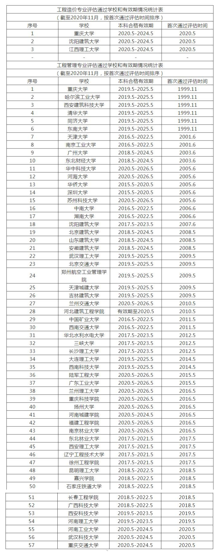 為了讓考生是更好地完成報名工作,現將經專業教育評估(認證)的工程管理、工程造價專業的院校名單公布如下,請廣大考生在報考時認真核對相關信息并正確選擇報考級別。